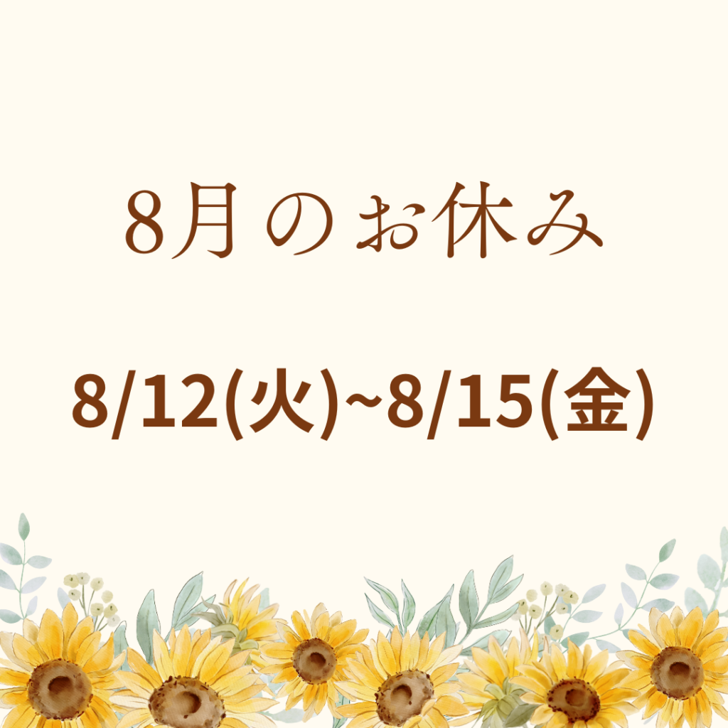8/12(火)〜8/15(金)は休校日とさせて頂きます。